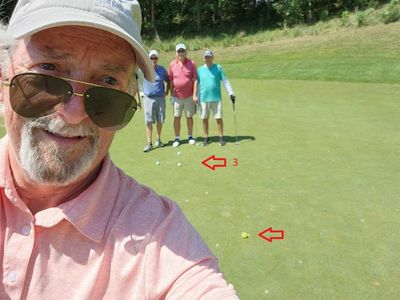 (Note: The balls pictured were on the far left side of the green, closest to the tee. The pin was way far to the right, over a ridge, in a true "Sucker Pin" position.)